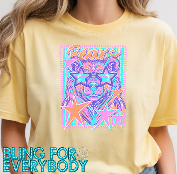 Bears Neon Scribbles Comfort Colors Graphic Tee
